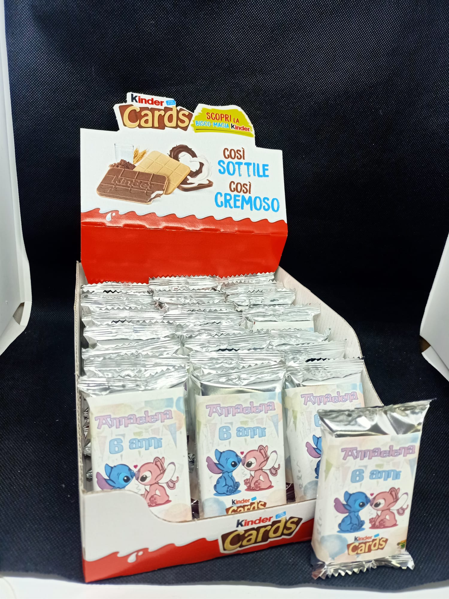 Perfetti da personalizzare con il personaggio o il disegno che il bambino desidera. Dopo una festa, potrebbero essere un’ottima scelta per i piccoli ospiti! Kinder Cards sono biscotti sottilissimi che nascondono un sorprendente ripieno cremoso al latte e cacao. Al primo morso, scoprirai questa inaspettata delizia. La cialda al cacao è croccante e non si scioglie, rendendo l’esperienza di gusto sorprendente. Cod 510000080