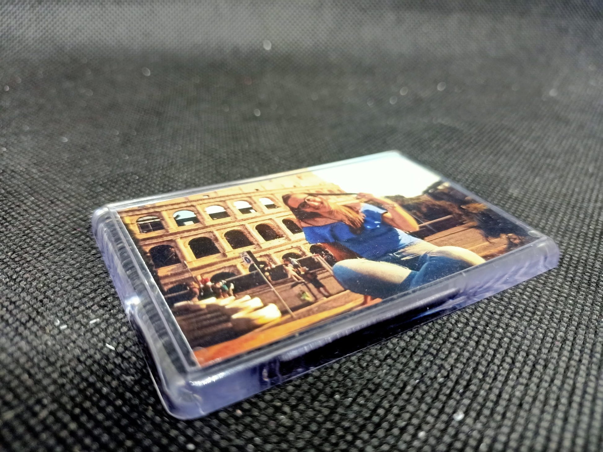 Magnete portafoto 7,7 x 5,1 cm in acrilico contenente immagine di 7 x 4,5 cm. Bordi arrotondati, la confezione è ordinabile a parte