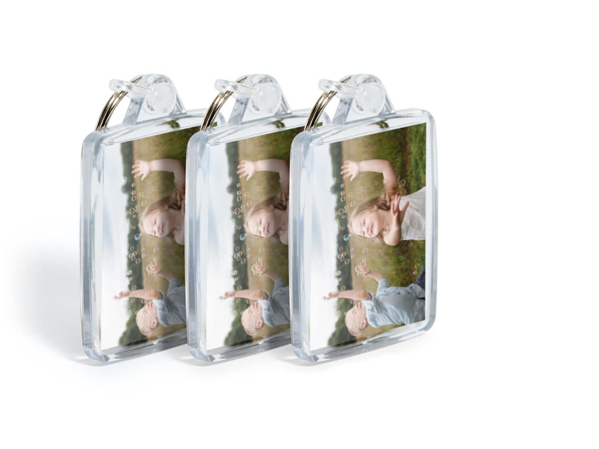 Portachiavi in acrilico trasparente, personalizzato con foto o piccola frase o col personaggio preferito, ottimo come dopofesta, per deliziare i tuoi amici. Doppia facciata personalizzabile. Nelle forme a cerchio o rettangolare. Confezione ordinabile a parte