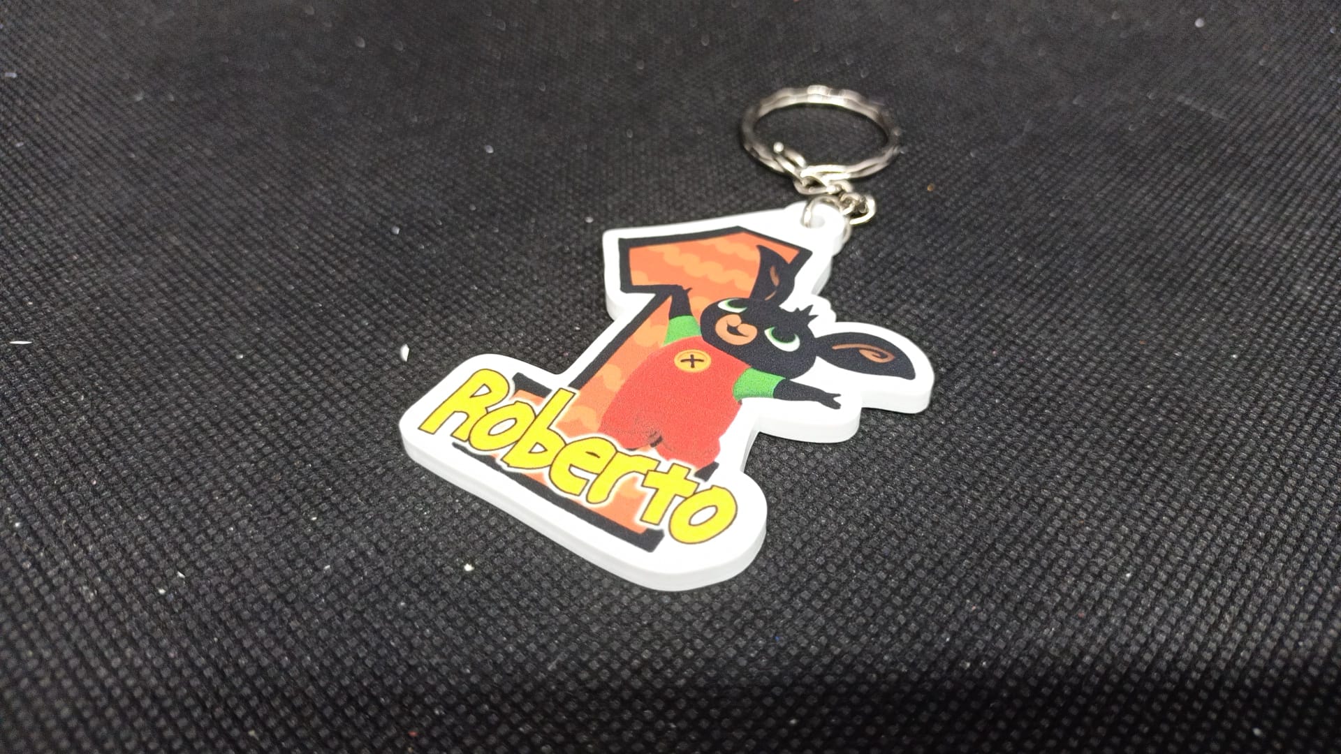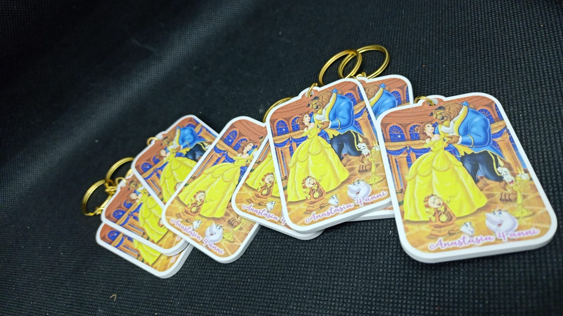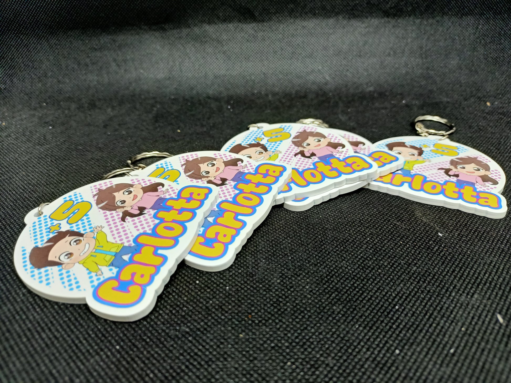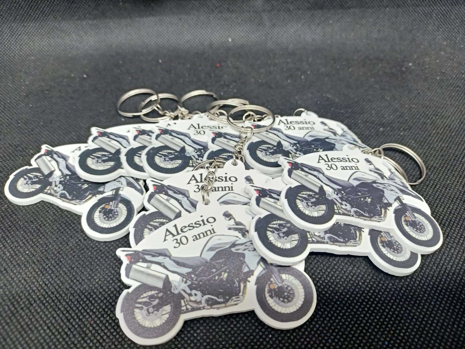 Sagomina con comodo portachiavi in plex bianco, trasparente o legno, personalizzabile con qualsiasi forma o personaggio, anche foto. Stampa diretta su materiale, altezza circa 7 cm, spessore 4mm. Confezione ordinabile a parte